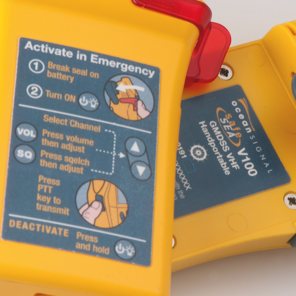 The SafeSea V100 survival craft hand portable radiotelephone meets all the requirements of the IMO for carriage on SOLAS ships. Designed to be ultra-rugged and easy to use, both on-board and in distress situations, the V100 is the ideal choice for mandatory and voluntary carriage.